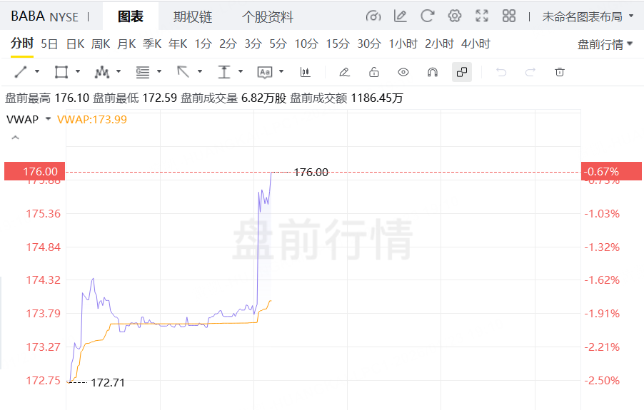 1月23日,英伟达盘前快速拉升,现涨超2%;阿里巴巴同步拉升,跌幅收窄至1%以内。