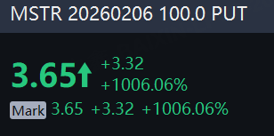 A total number of 1.29M options related to Strategy were traded on Thursday, up 90% from the previous trading day, of which put options accounted for 62%. Particularly high volume was seen for the $100 strike put option expiring Feb 6, 2026, with 37,233 contracts trading. $MSTR 20260206 100.0 PUT$
