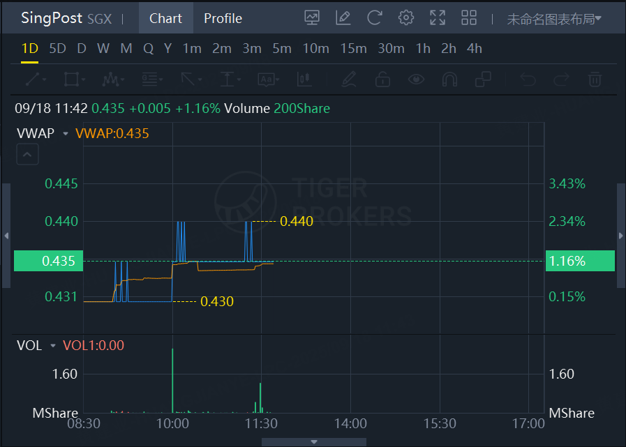SingPost jumps 1.16% at 11:42 am, Sep 18.
