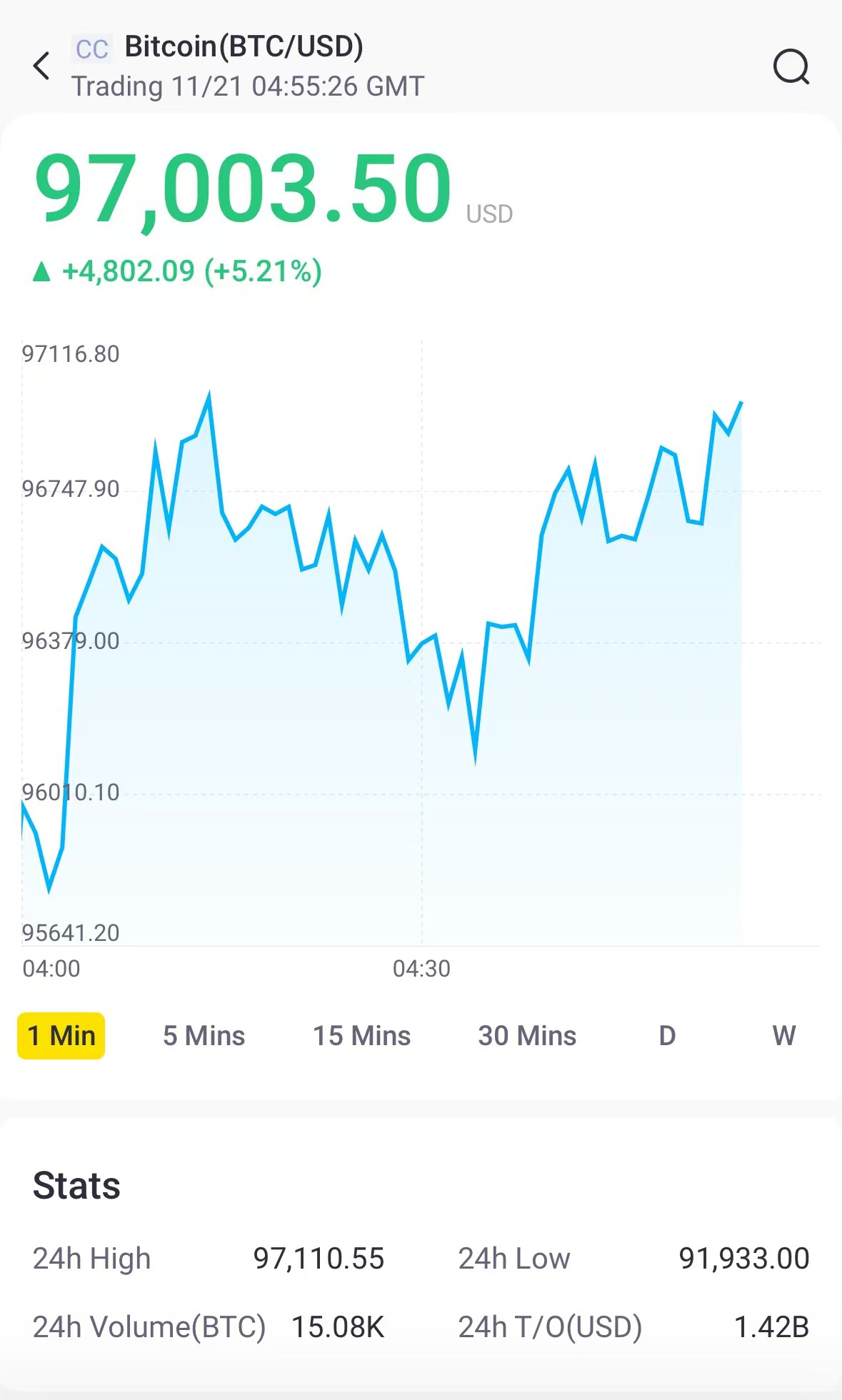 Bitcoin Hits Record $97,000 as Crypto Seeks Direct Line to Trump