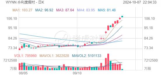周一,永利度假村盘初一度涨超2%。消息面上,永利度假村宣布,已获阿拉伯联合酋长国颁发全国首个商业博彩运营商许可证。该公司正在阿联酋建设中东和北非地区的首个综合博彩度假村永利马里安岛(Wynn Al Marjan Island)。该项目预计耗资数十亿美元,将在2027年初向公众开放。