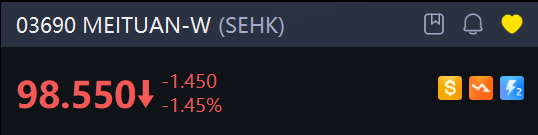 Hong Kong-listed shares of Meituan dropped 1.5% in morning trading.
