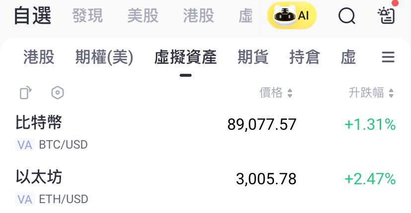 据Tiger Trade行情,BTC24小时行情升1.31%,报89077.57美元,ETH重回3000美元,升2.47%。