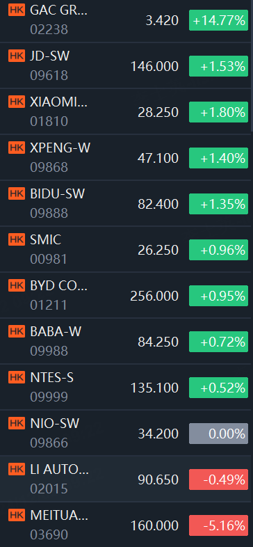 Among individual stocks, BYD Electronic rose 2.75%. Xiaomi rose 1.80%. XPeng rose 1.40%, driven by the news that the company delivered 30,895 new cars in November, a year-on-year increase of 54%.