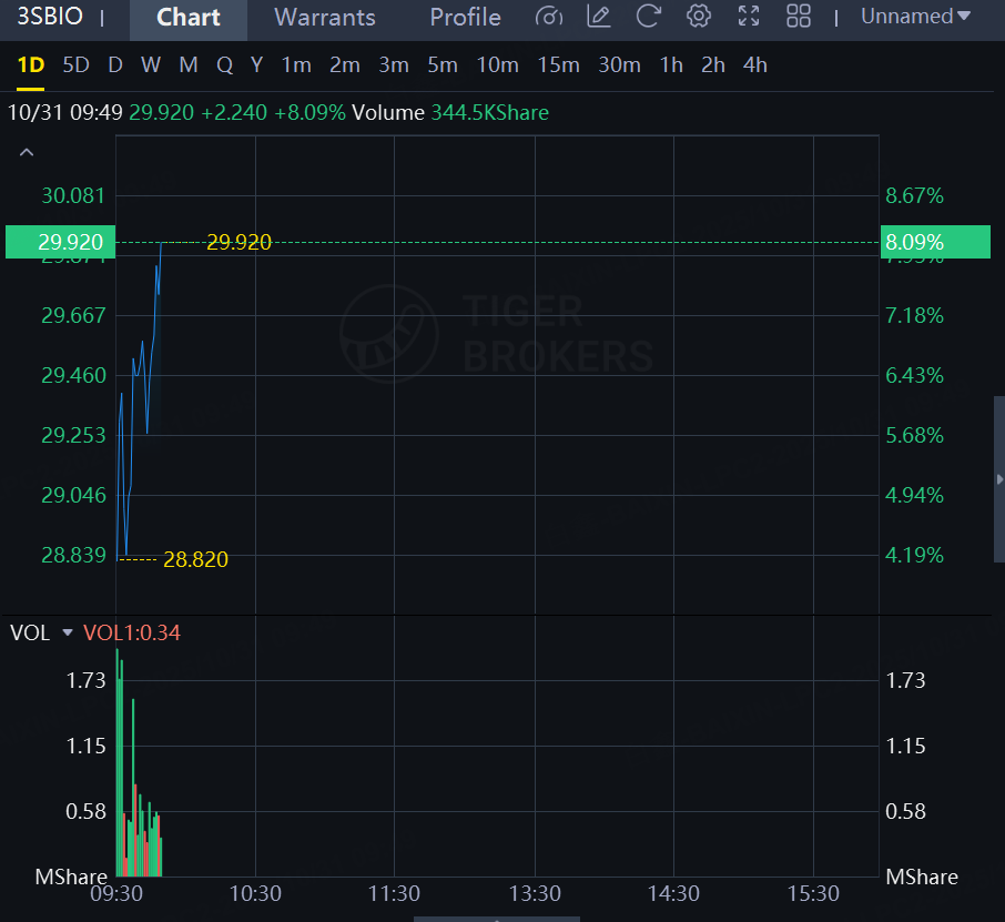 3SBIO (01530) surged 8% in early trading, reaching HK$29.46 with a turnover of HK$381 million by the time of reporting. The uptick follows news that Pfizer (PFE) registered two global Phase III clinical trials for its PD-1/VEGF bispecific antibody PF-08634404 (SSGJ-707) on Clinicaltrials.gov on October 30. The trials will evaluate the drug in combination with chemotherapy for advanced non-small cell lung cancer (head-to-head against Keytruda + chemotherapy) and metastatic colorectal cancer.