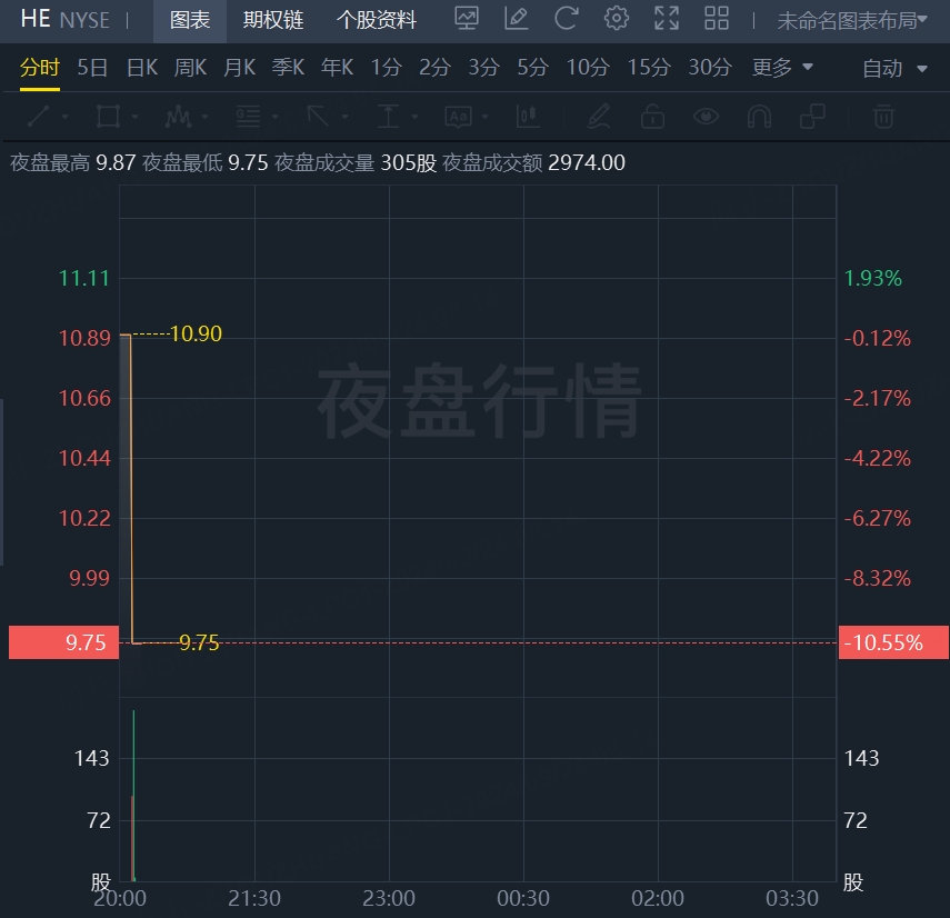 9月24日,美股夜盘时段,夏威夷电力跌超10%,公司计划公开发行5亿美元普通股。