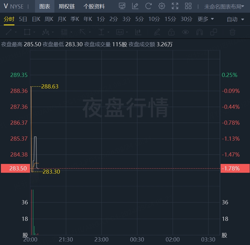 Visa跌近2%,消息称该公司面临美国司法部的反垄断调查,涉及借记卡业务。