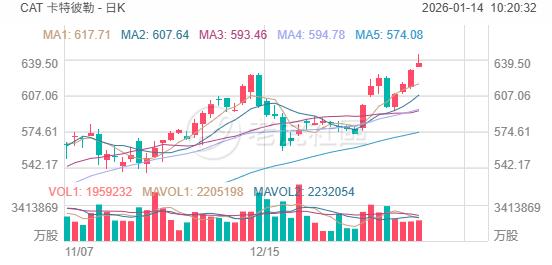 工业巨头卡特彼勒(CAT.US)股价延续了由人工智能前景激发的强劲涨势,其市值周二首次短暂突破3000亿美元大关。其股价在周二一度上涨2.4%,触及644.59美元的高点。随后涨幅有所收窄,截至收盘上涨1.1%,公司市值约为2980亿美元。