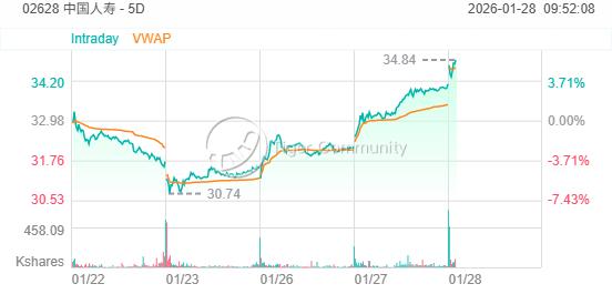 中國人壽上日升近6%,為升幅最大藍籌股,中壽購中寿摩通六八购A.C/沽中寿摩通六六沽A.P