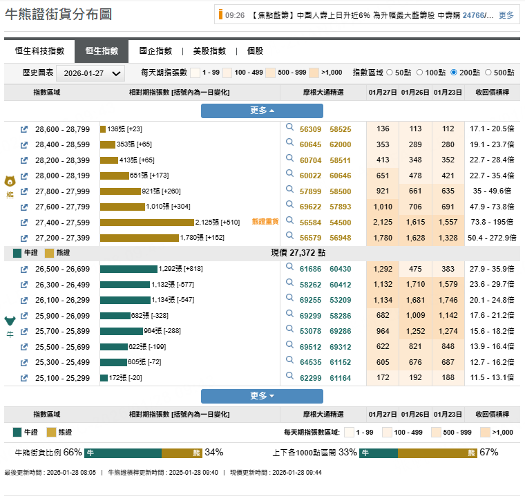 恒指上日重上27000點關,恒指牛恒指摩通八甲牛Q.C /熊 恒指摩通七八熊F.P