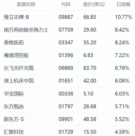 三、港股今日涨幅TOP10