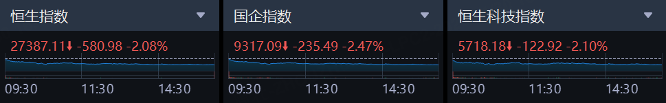 腾讯控股跌2.57%、阿里巴巴跌2.37%、小米集团跌3.06%、美团跌1.42%、京东集团跌1.92%、百度集团跌1.74%