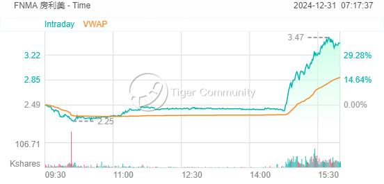 房利美周一上涨36.14%,房地美上涨33.87%;均创下11月中旬以来最大盘中涨幅。