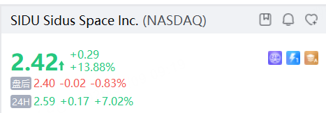 太空概念股普涨,Sidus Space涨超7%,Rocket Lab涨超6%,AST SpaceMobile、Redwire涨超3%。