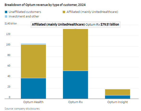 These are UnitedHealthcare, the insurer; Optum Health, which delivers care through clinics and doctors offices; Optum Insight, which focuses on technology and payments systems; and Optum Rx, which provides pharmacy services.