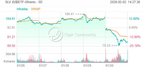 上周五,白银与黄金价格双双大幅下挫。其中, SLV暴跌28.5%, GLD下跌10.3%;