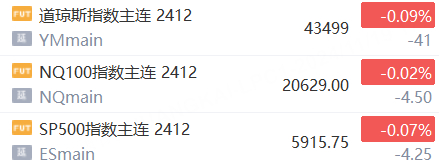 11月19日,美股三大股指期货下跌,截止发稿,道指期货跌0.09%,纳指期货跌0.02%,标普500指数期货跌0.07%。