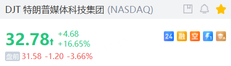 加密货币交易平台Bakkt涨超22%,DJT跌近4%,消息称Bakkt将获得特朗普媒体科技收购,昨日股价双双暴涨。
