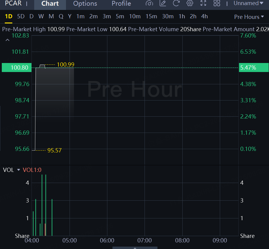 PACCAR rose 5% as Trump says US will impose new tariffs on heavy trucks.