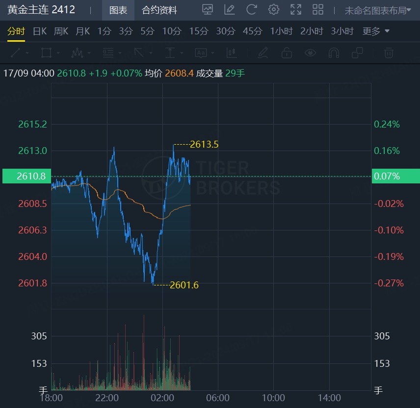 黄金期货小幅走高,现涨0.07%,报2610.8美元/盎司。