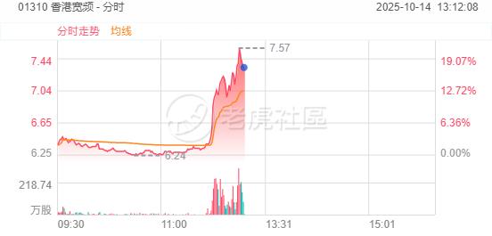 10月14日,香港宽频午后逆势涨超20%,成交额超3亿港元。