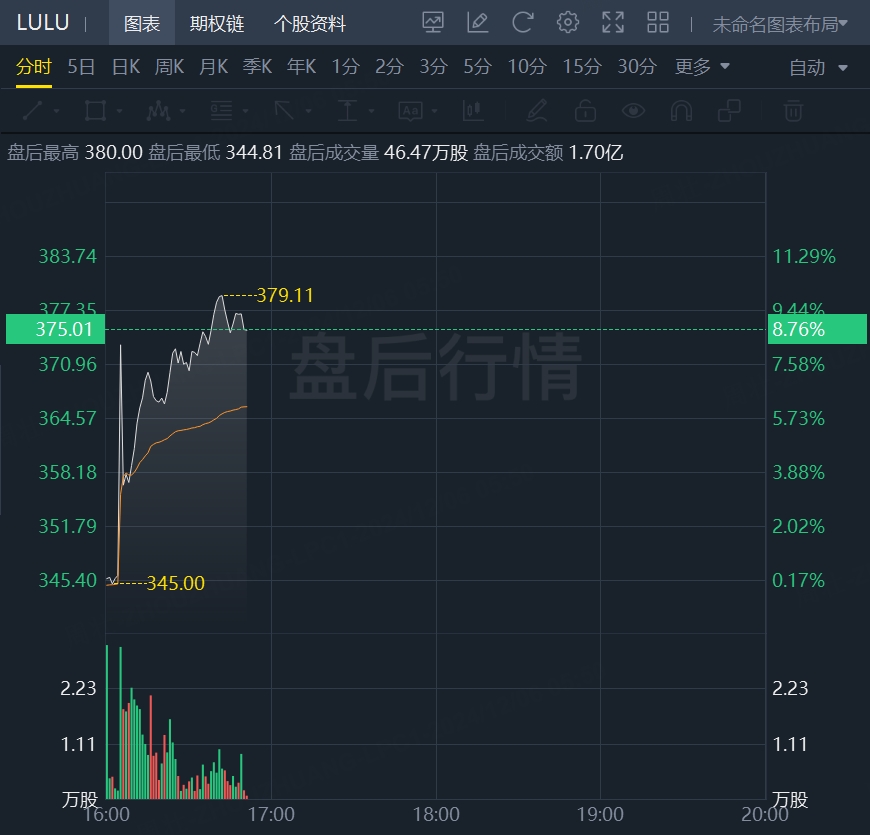 财报发布后,Lululemon美股盘后涨近9%。