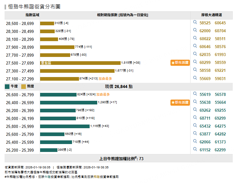 恒指上周累升超過600點,觀察好淡友部署,上周五輪場投資者傾向進場博反彈。恒指牛 恒指摩通八八牛C.C /熊 恒指摩通八乙熊G.P