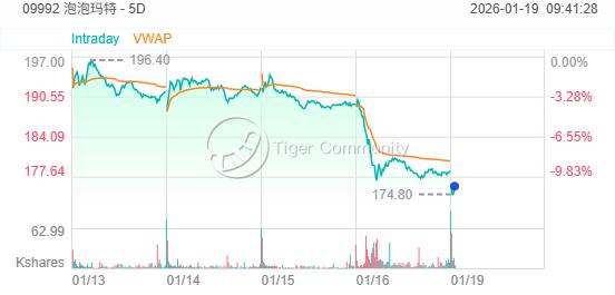 泡泡瑪特股價上周五跌至逾8個月新低,曾跌穿180元水平。泡瑪購 泡玛摩通六五购A.C /沽 泡玛摩通六四沽B.P
