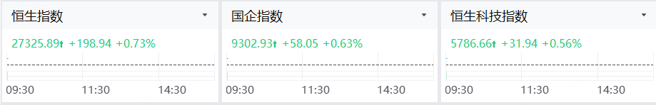 1月28日,港股三大指数高开,恒指涨0.73%,国指涨0.63%,恒生科技指数涨0.56%。