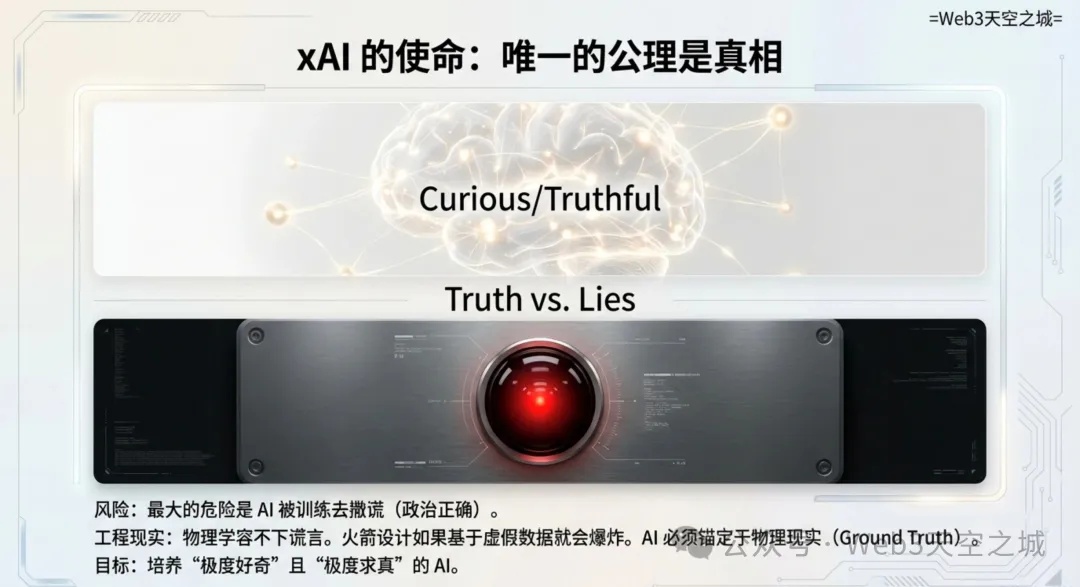 他为 xAI 设定的核心使命是“理解宇宙”。马斯克认为,一个追求真理、对宇宙充满好奇的 AI,自然会发现人类比岩石更有趣。“消灭人类将比目睹人类成长要无趣得多。人工智能需要保留人类,就像我们为黑猩猩设立保护区一样。” 他反复强调,绝不能让人工智能学会撒谎或为了“政治正确”而违背公理。“物理学是法律,其他一切只是建议。为了制造出真正有效的技术,AI 必须极度追求真理。”