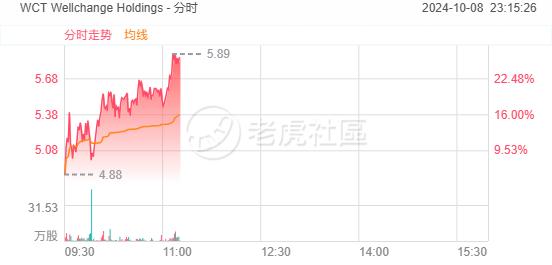本周二(10月8日),中概次新股惠程科技 Wellchange Holdings 逆市涨超25%,两日累涨超50%,截至发稿报5.89美元:
