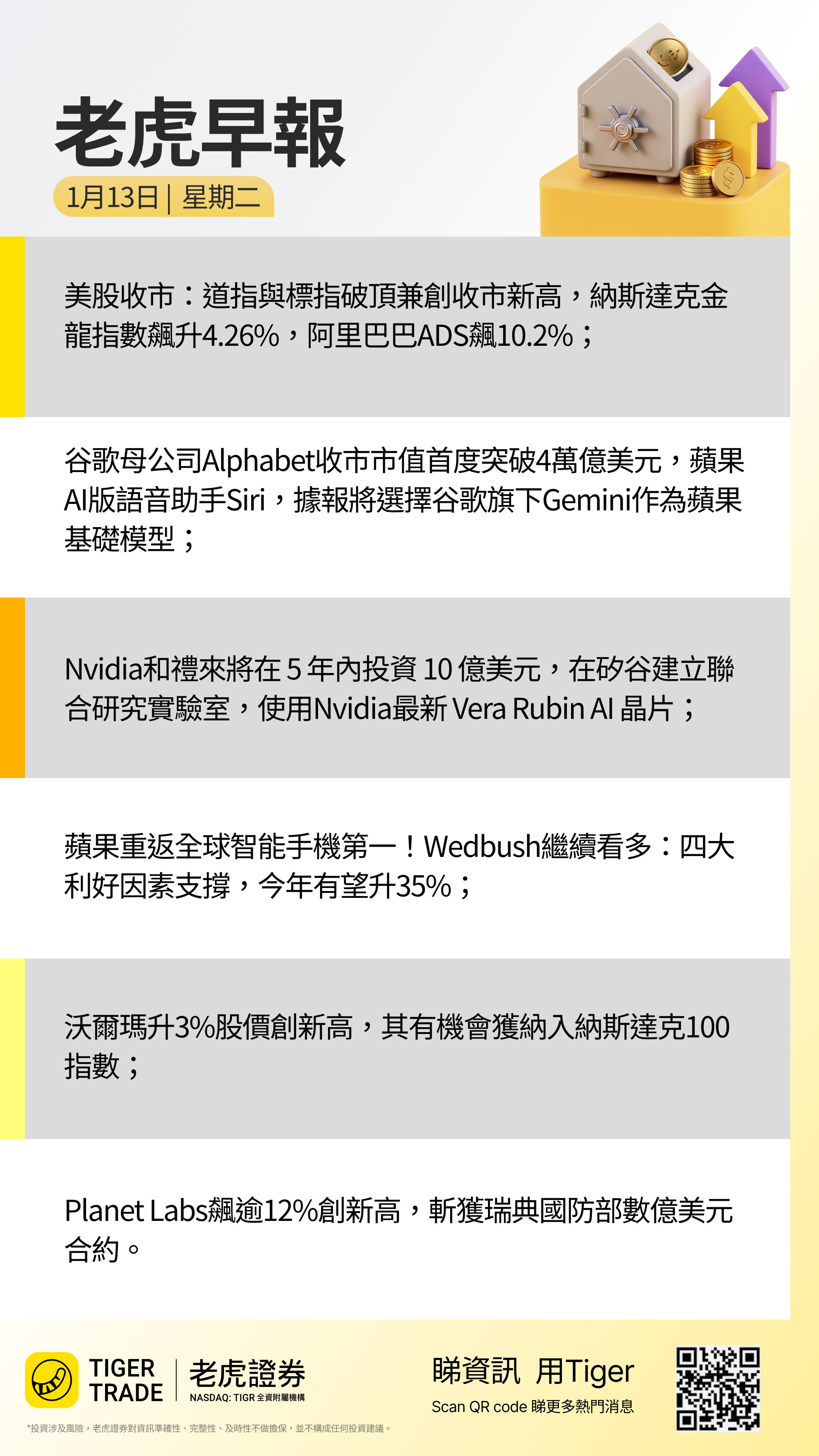 谷歌收盘市值突破4万亿美元!苹果选择Gemini驱动今年将面世的AI版Siri;