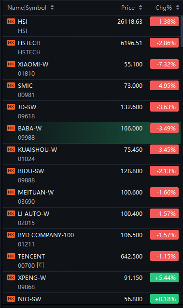 In terms of star stocks, Xiaomi fell 7%; SMIC fell 5%; JD.com fell 4%; Alibaba, Kuaishou fell 3%; Meituan, Baidu fell 2%; Tencnet fell 1%; XPeng rose 5%.