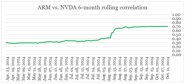 这清楚地表明,Nvidia AI芯片的预期增长对ARM的预期回报起着至关重要的作用。相比之下,现在NVDA和AMD之间的相关性也远低于NVDA和ARM之间的相关性。