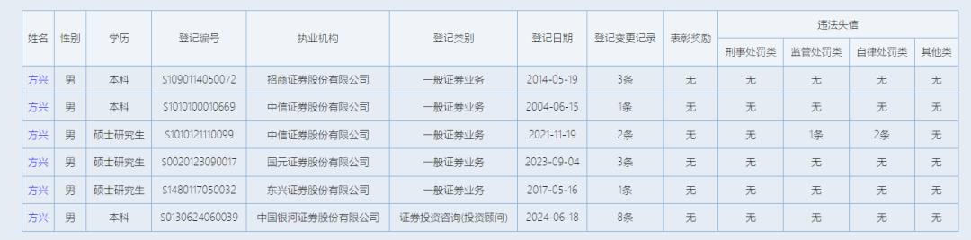 令行家纳闷的是,这位高薪的高管名下,竟然有三则“违法失信”信息,包括一则监管处罚信息和两则自律处分信息——