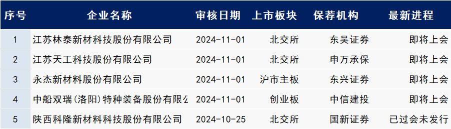 本期(10.21-10.25)有1家上会企业,最新进程均为已过会未发行。11月1日有4家企业即将上会。