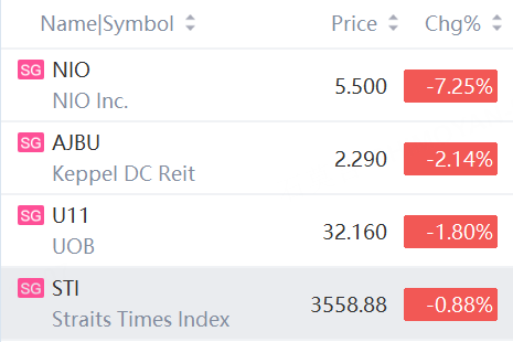 In company news, Nio fell over 7%; Keppel DC Reit fell over 2%; UOB fell 1.8%.