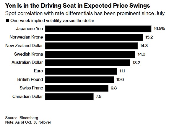 期权市场显示,投资者预计十国集团货币将大幅波动,尤其是日元、挪威克朗和新西兰元。墨西哥比索和韩元也显得脆弱。