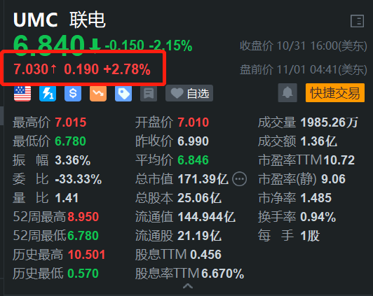 美股异动丨联电盘前涨近3% Q3晶圆出货量环比升7.8% 小摩首予其“持有”评级