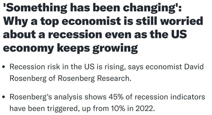 美国罗森伯格研究公司经济学家大卫·罗森伯格在此前的一份报告中列举了20项美国经济衰退指标。据他分析,其中有9项已被触发,这意味着“美国经济陷入衰退的可能性正在上升”。
