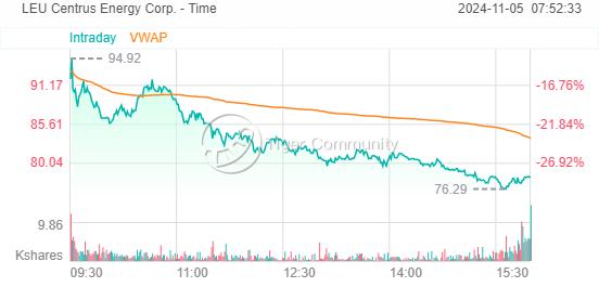 其他核电股股价也下挫。 Centrus Energy Corp. (LEU.US)周一跌28%,Sam Altman持股的 Oklo Inc.(OKLO.US)跌2.86%, NuScale Power (SMR.US)跌2.84%, 道明尼资源 (D.US)跌2.32%。