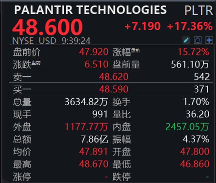 22:39 Palantir涨超17%
