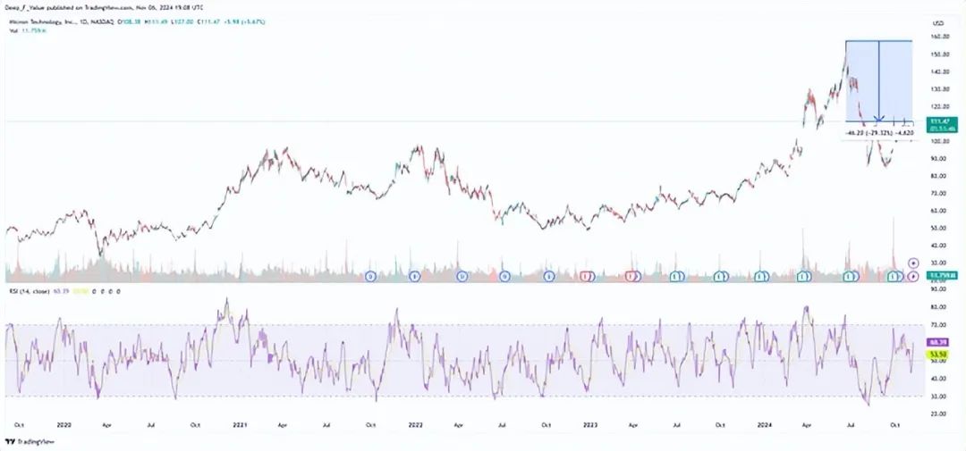 美光科技公司(NASDAQ:MU )自今年 6 月达到历史最高点以来一直处于回调状态。