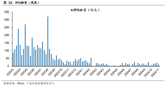 (1)IPO融资:根据wind数据,本周IPO规模为9.68亿元,前一周IPO规模为22.50亿元,IPO融资规模持续维持低量,截止本周五,11月IPO上市公司共计2家。
