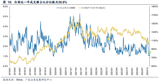 (四)白酒:本周近一年拥挤度分位数为:28.6%,环比增加24.1百分点;