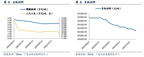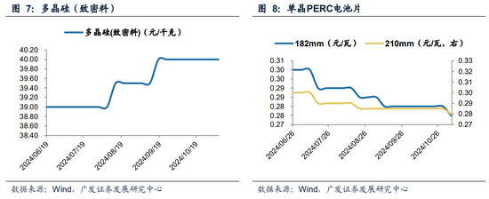锂电方面,截至11月8日,正极磷酸铁锂周均价3.31万元/吨,周环比上升,三元6系周均12.05万元/吨,周环比下降。负极材料周均价3.906万元/吨,周环比下降。光伏方面,截至11月6日,多晶硅(致密料)现货周均价40.00元/千克,周环比不变,单晶PERC电池片(210mm,22.8%+)现货周均价0.28元/瓦,周环比保持不变。