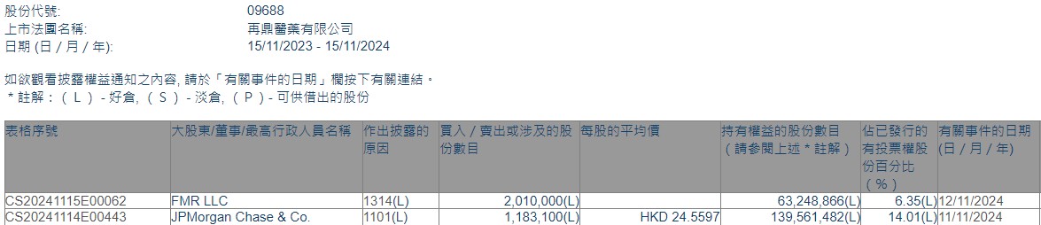 摩根大通增持再鼎医药(09688)118.31万股 每股作价约24.56港元