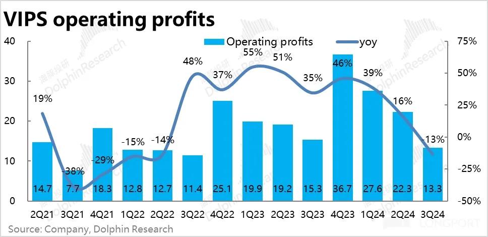 北京时间 11 月 19 日美股盘前,$唯品会.US 发榜了 2024 年 3 季度财报,概括来看收入和经营利润双双约 10% 上下的下滑,业绩表现无疑较差,但市场对此已充分预期。