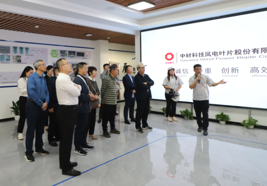 11月26日下午及11月27日上午,调研组一行赴中材叶片阳江基地实地调研,参观展厅和122米及147米型号大型风电叶片生产线,详细了解中材叶片阳江基地在科技创新、数字智能等方面取得的成效,并与中材科技及中材叶片管理层就经营发展和“两海”战略等内容开展深入交流。