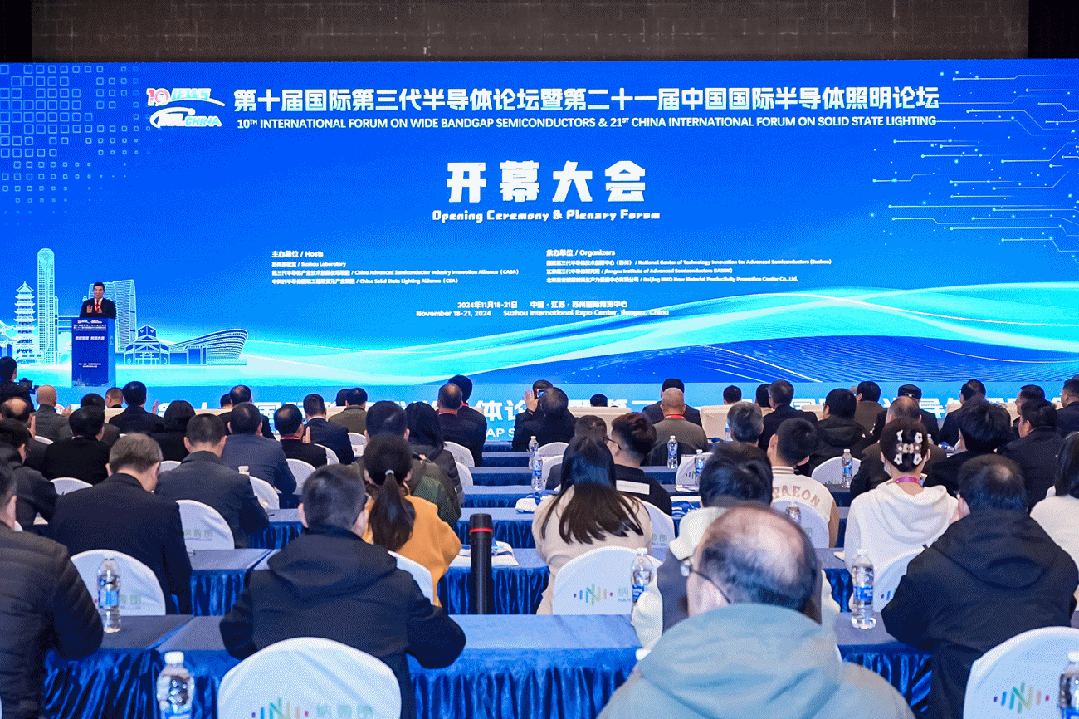 2024年11月18-21日,第十届国际第三代半导体论坛&第二十一届中国国际半导体照明论坛(IFWS&SSLCHINA2024)在苏州召开。本届论坛由苏州实验室、第三代半导体产业技术创新战略联盟(CASA)、中关村半导体照明工程研发及产业联盟(CSA)主办,国家第三代半导体技术创新中心(苏州)(NCTIAS)、江苏第三代半导体研究院、北京麦肯桥新材料生产力促进中心有限公司承办。来自政、产、学、研、用、资等LED及第三代半导体产业领域国内外知名专家、企业高管、科研院所高校学者,共计2100余名代表注册参会。通过大会、16场主题技术分论坛、5场热点产业峰会、4场强芯沙龙会客厅主题对话、以及第六届先进半导体技术应用创新展(CASTAS)、POSTER展示交流等多种形式的活动,在近30个专题活动、230余个主题报告,台上台下展开探讨,从不同的角度分享前沿技术进展,交流探讨,观点碰撞,探求技术与产业化融合创新与发展之道。